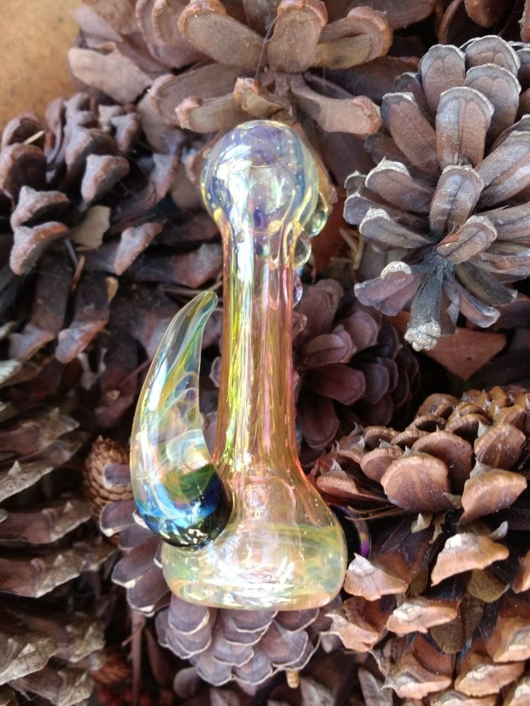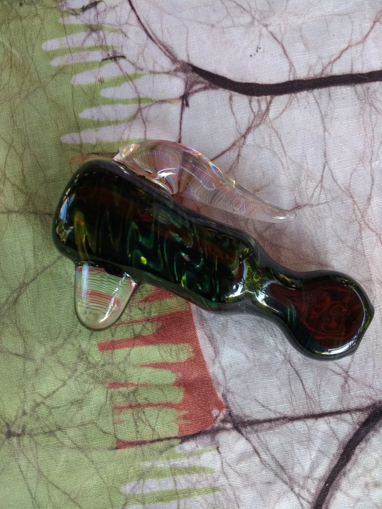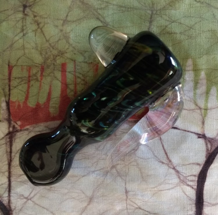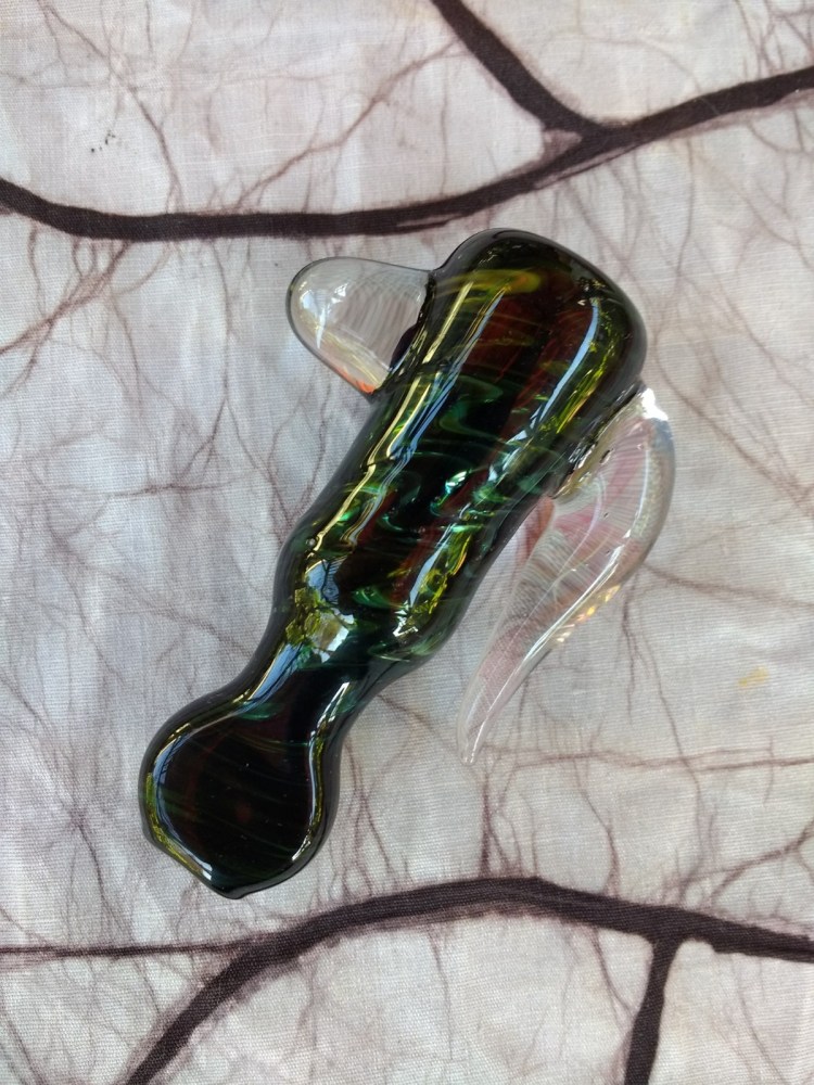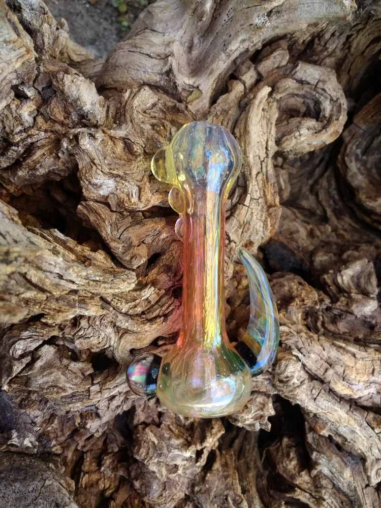 3.5″ FUMED COLOR CHANGING CHILLUM WITH HORN AND ENCASED OPAL $35.00